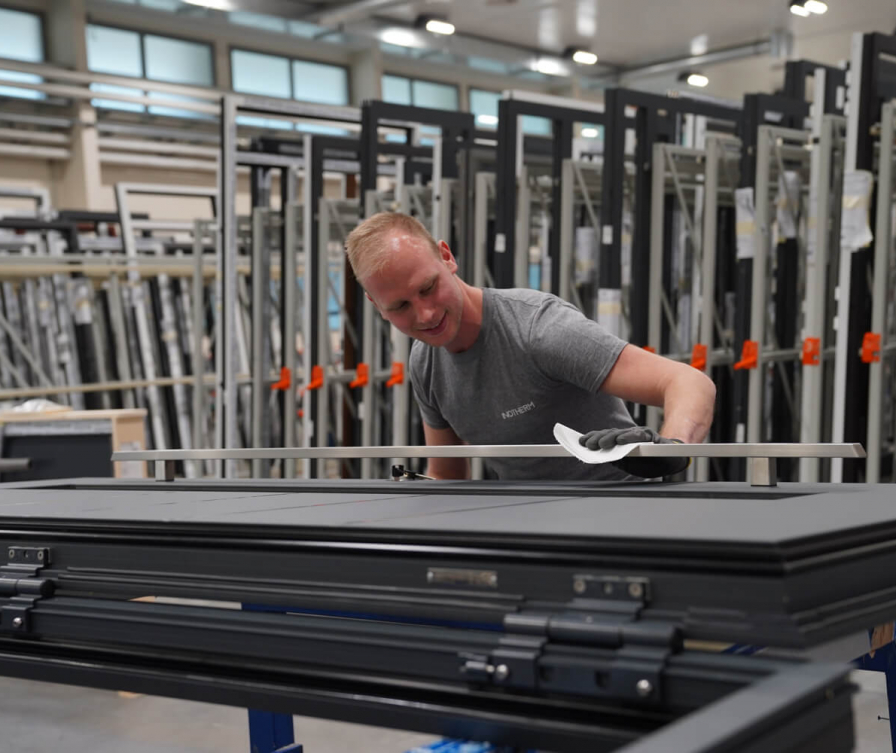 V svoji proizvodnji od začetka do konca izdelamo prav vsaka vrata. Sami izdelujemo polnila različnih debelin, izdelamo plošče iz različnih materialov (aluminij, imitacija lesa, stekleni detajli), po vaših željah oblikujemo steklene panele ter sami proizvajamo tudi vse dele iz nerjaveče pločevine. Da alu vhodna vrata Inotherm ohranijo najvišje standarde, jim dodamo tudi preizkušen profilni sistem nemškega proizvajalca SCHÜCO.