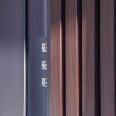 Chaque porte est en effet conçue pour être compatible avec l’ensemble des accessoires de sécurité de notre gamme — du système d’ouverture intelligente au judas numérique.